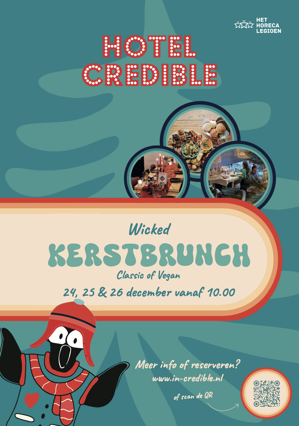 Hotel Credible is een hotel en restaurant aan de Hertogstraat in Nijmegen. Ik heb in mijn tijd bij het horecalegioen allerlei drukwerk ontworpen, zoals verschillende posters en de menukaart. Hieronder vind je een greep uit mijn werk.